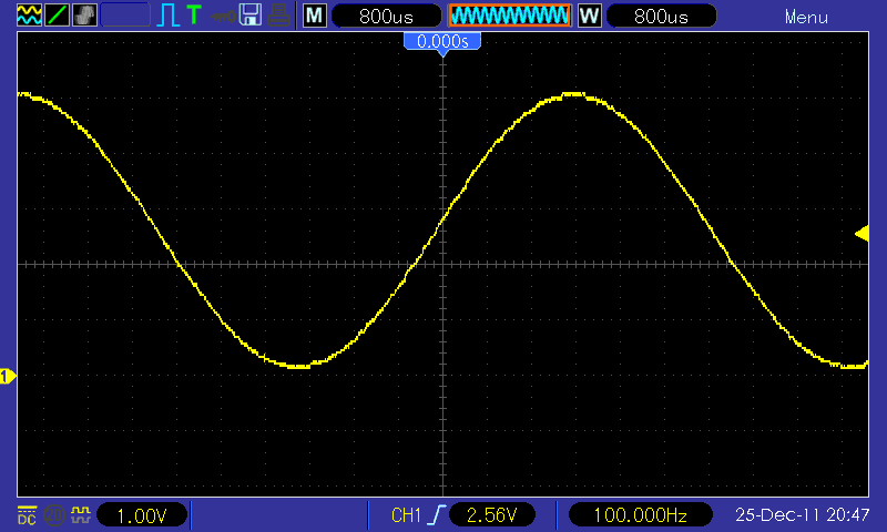 100Hz 5v p/p Note that some of the vertical stepping above is due to the 'scope screen