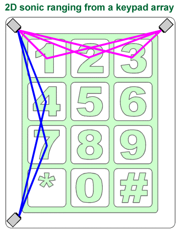 For a two dimensional array of buttons, with 3 or 4 mic's, you could