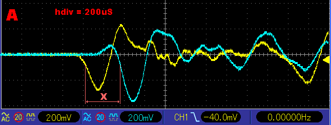 350 uS. That matches my measured distance "X" reasonably well. Yay! :)