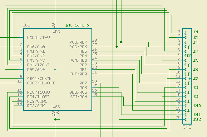 direct to 8 PIC pins on PORTB, the 12 digit cathodes connect to