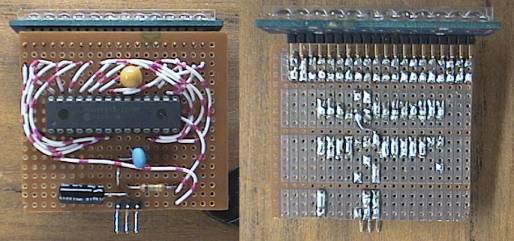 I stuck an old junk PIC 16F873 in a socket and soldered it into some