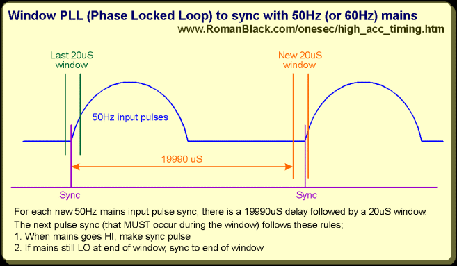 A "mains disciplined" clock would be to run the PIC xtal at a steady frequency