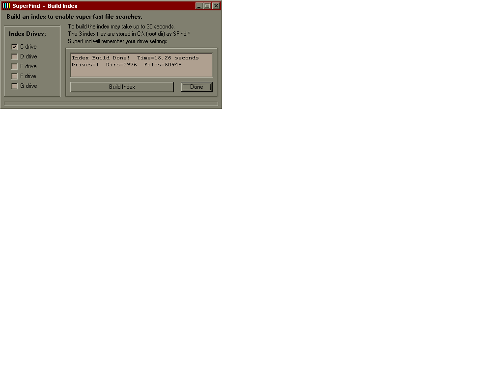 takes forever to find your files, SuperFind searches an OPTIMISED